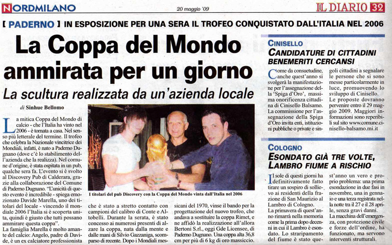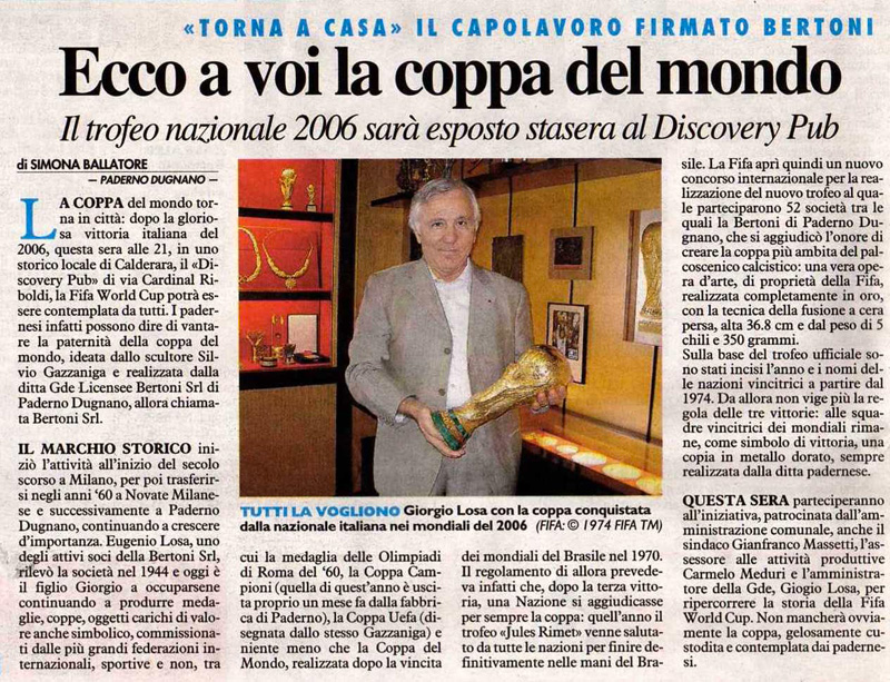 Dal 1974 la Coppa del Mondo FIFA è realizzata dalla GDE Bertoni di Paderno Dugnano.