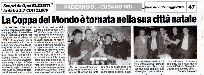 La stragrande maggioranza dei cittadini padernesi è ignara che il trofeo più ambito al mondo è un patrimonio della città di Paderno Dugnano.
