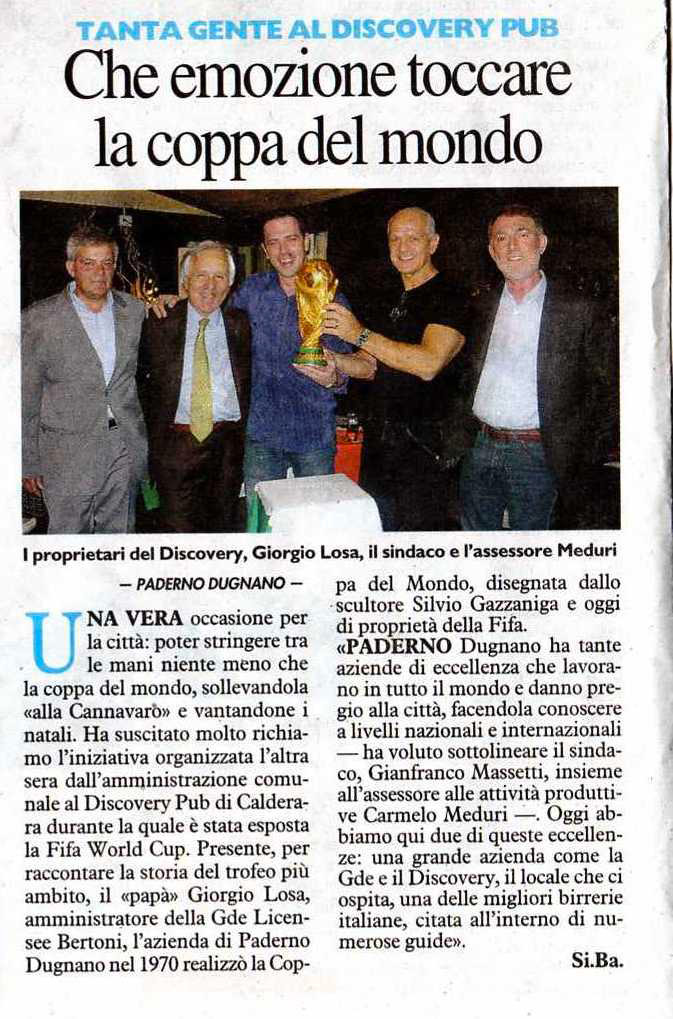 Decide allora da li a poco di aprire il Discovery, nel 1985. Nel 2009, dopo 24 anni di duri sacrifici, forse il destino o qualcos’altro ha voluto che la Coppa del Mondo Angelo la avesse lo stesso nella vita, ed è arrivata nel suo locale.